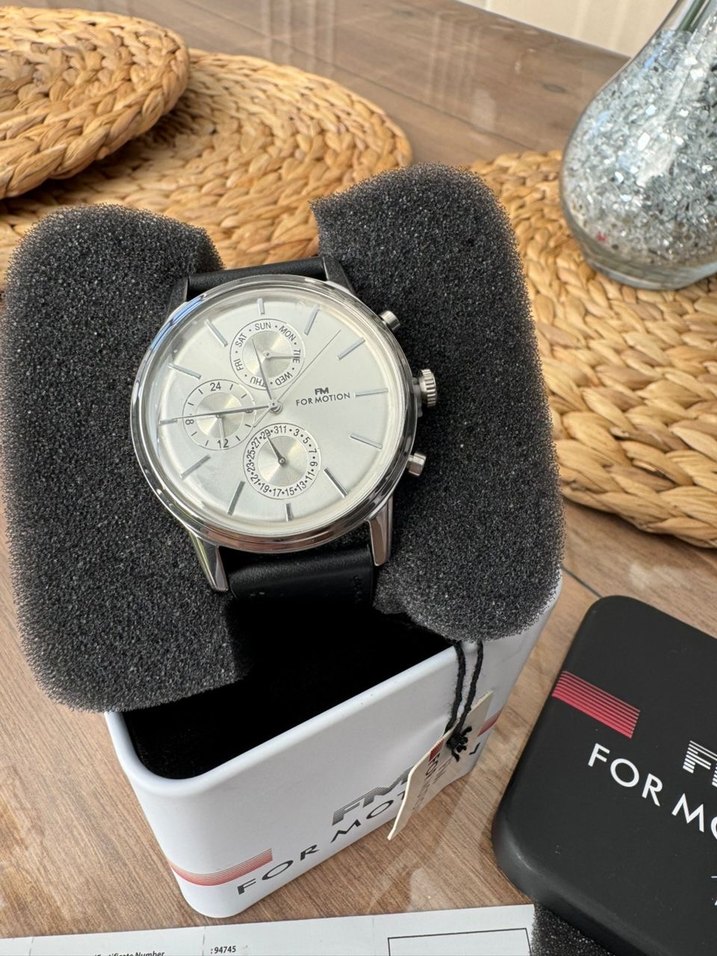 For Motion markalı, beyaz kadranlı ve gri detaylara sahip erkek saati, sokak modası ve Paris etkisi taşıyor. ⌚