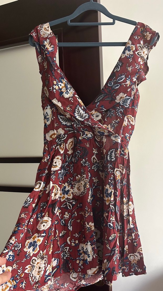 Forever 21 Bordo V Yakalı Bohem Mini Elbise
