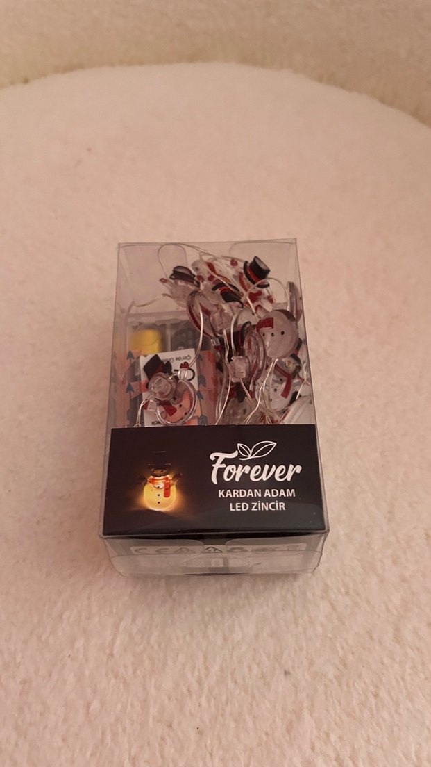 Forever marka beyaz LED zincir, kardan adam figürlü, parlak ışık veren dekoratif ledler içerir.❄️