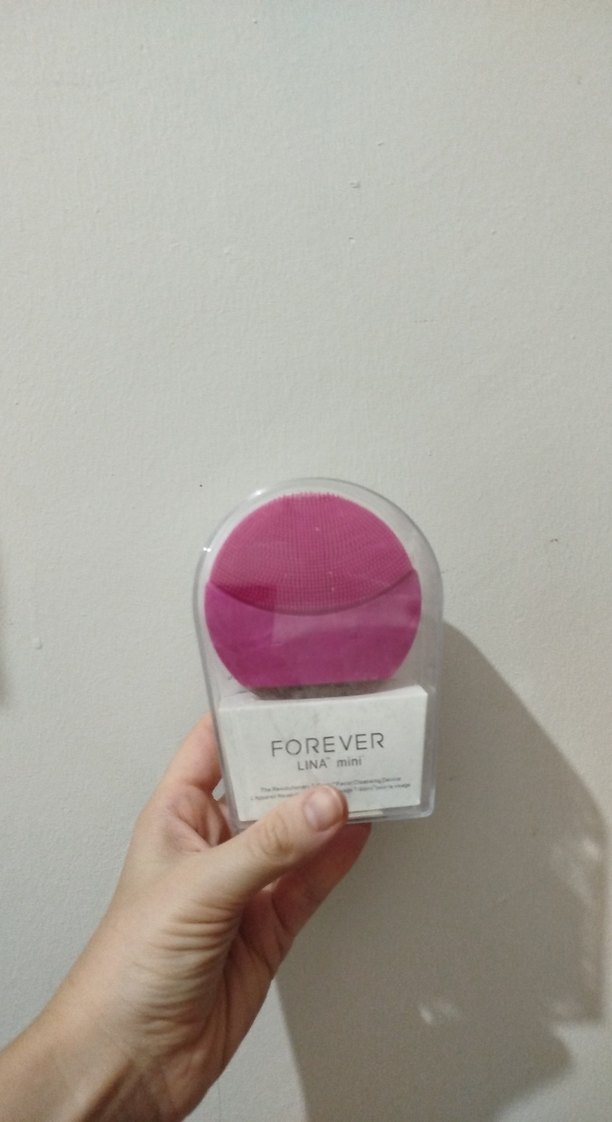 Forever Lina Mini yüz temizleme cihazı, pastel pembe renkte, yumuşak silikon kıllarla nazik cilt temizliği sağlar. Yüzünüze ya da cihaza temizleyici sürüyorsunuz cihaz masaj yaparak köpürterek temizliyor. Bir defa kullandım düzenli kullananadığım için satıyorum
