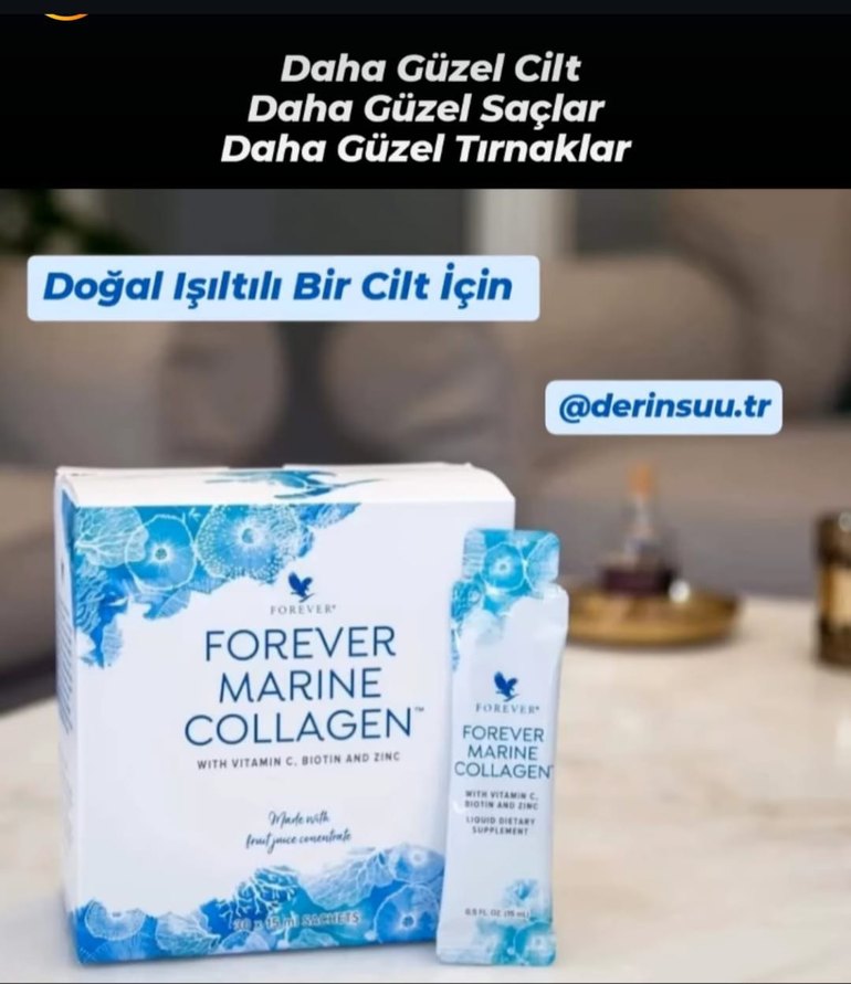 Forever Marine Collagen, vitamin C, biotin ve çinko ile daha güzel cilt, saç ve tırnaklar için doğal ışıltı sağlar. ✨
