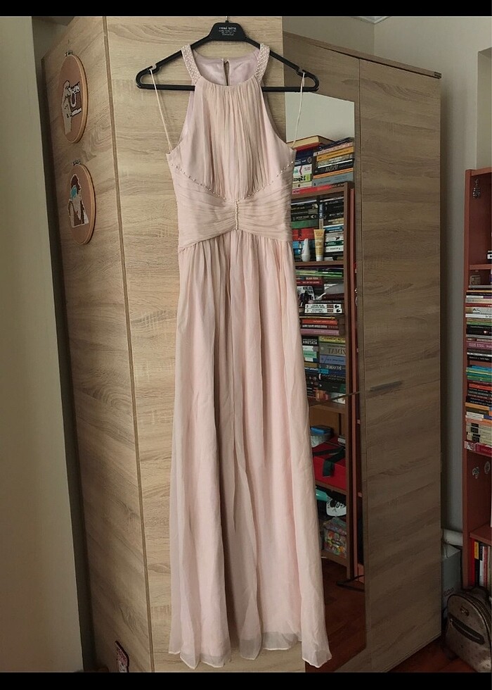 Markası FOREVER NEW ✨Söz, nişan, balo, düğün tüm davetlerde giyilebilecek zamansız çok şık bir elbise. Ben de uygulamadan almıştım ama boyum 1.67 topuklu ayakkabı giyince biraz kısa durdu o yüzden hiç kullanmadım. Bazı yerlerinde ufak takılmalar var kloş bir model olduğu için belli olmuyor. Etek uçları yıpranmış bir de biraz. Dolapta olduğu için ütüsüz. Onun harici tertemiz. Tam ölçülerini alabilirsiiiniiz