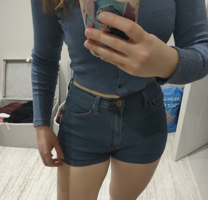 S ve M bedene uygun, yüksek bel likralı kot şort.