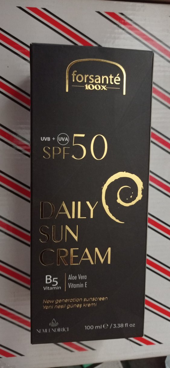 Forsanté SPF 50 günlük güneş kremi, UVA ve UVB ışınlarına karşı yüksek koruma sağlar. B5 vitamini, E vitamini ve aloe vera içerir. ☀️#güneşkremi#krem#kozmetik#güneşeetkili#takı#aksesuar#moda#etek#elbise#gömlek#pantolon#takı#çeliktakı#kolye#bileklik
