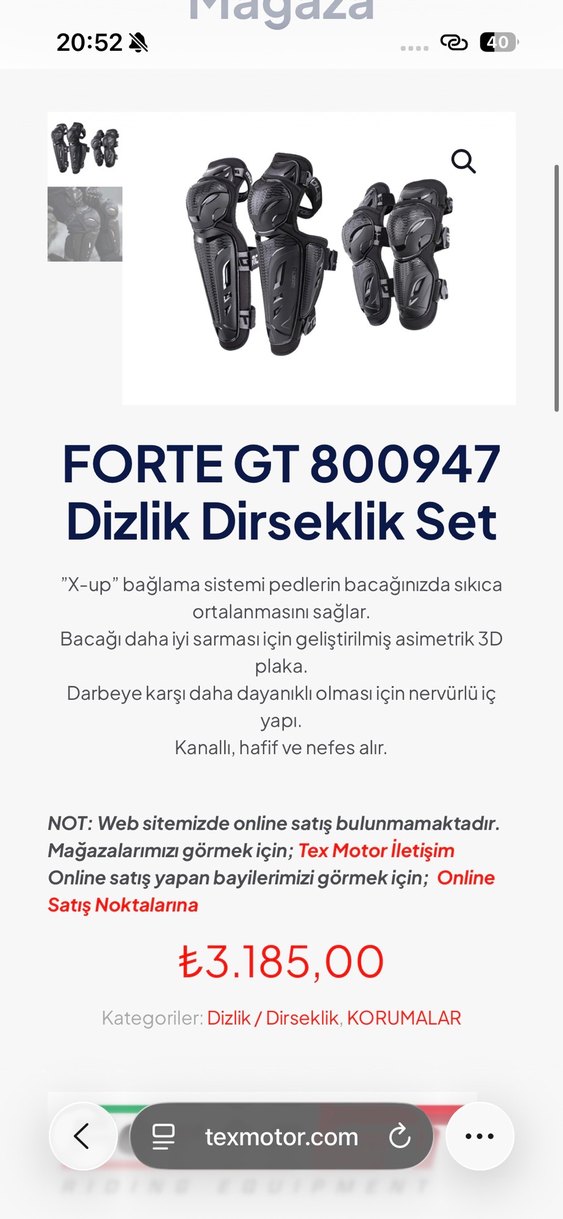 FORTE GT motosiklet dizlik dirseklik koruyucu 0 ürün etiketlidir