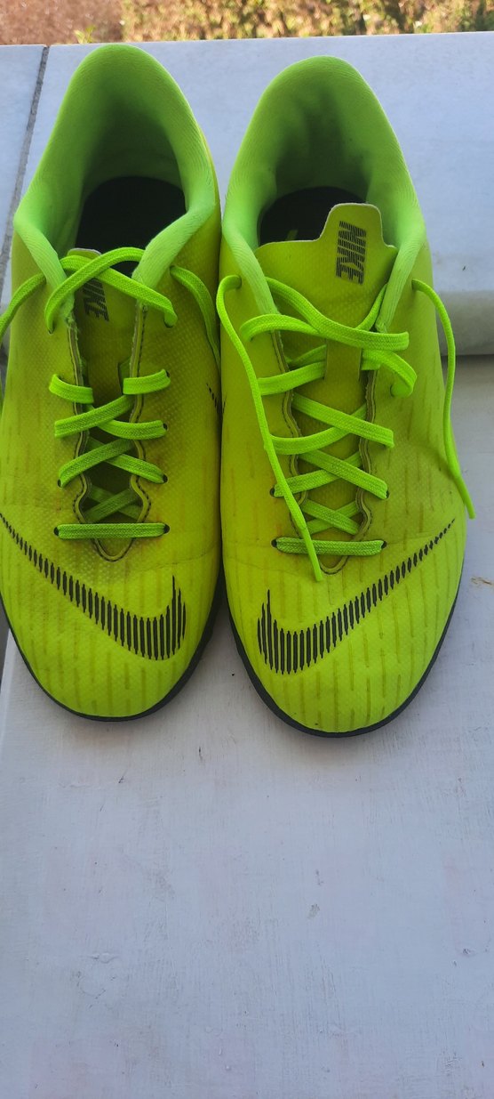 yeşil renkli, kauçuk tabanlı erkek çocuk spor ayakkabısı.bagcikli canlı tasarım. Nike markalı.