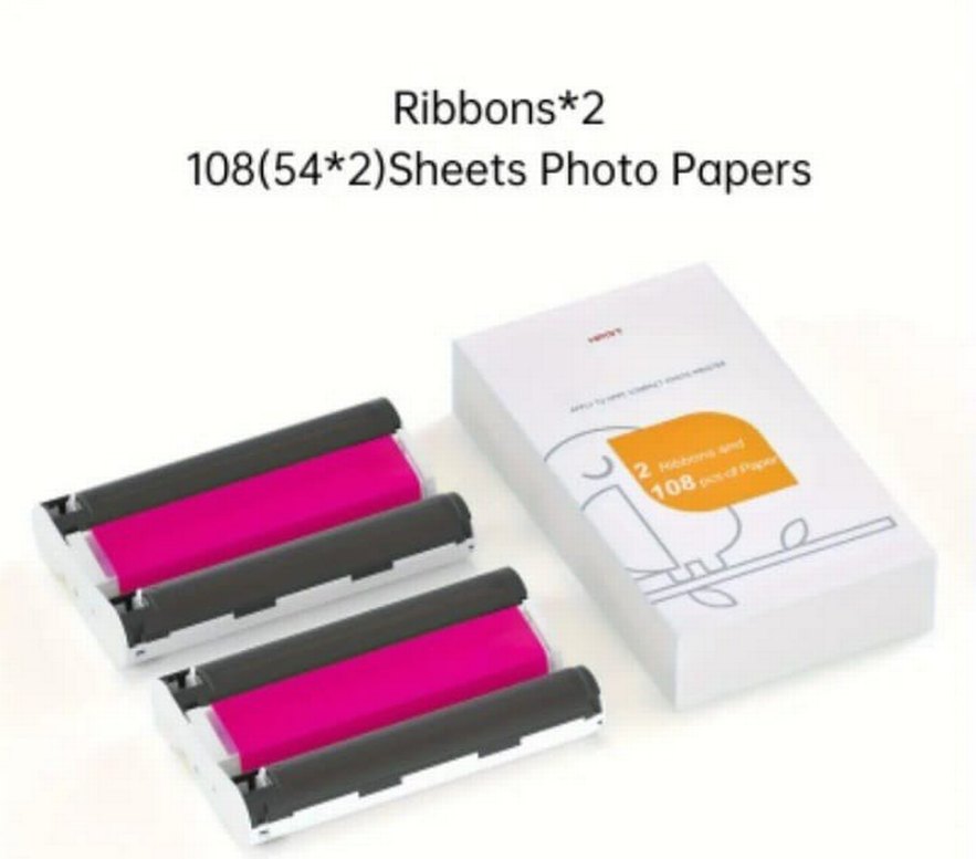 İki pembe yazıcı şeridi ve 108 adet fotoğraf kağıdı içeren set, fotoğraf baskısı için uygundur. ️