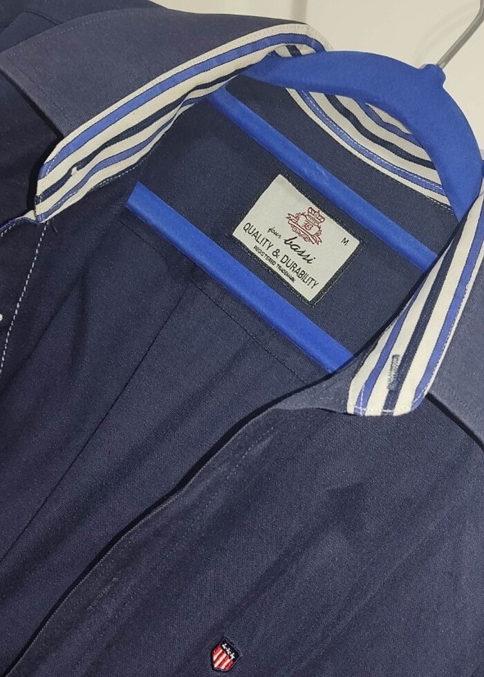 İyi durumdadır. Kullanmayacağım için satıyorum. Four Bassi Erkek Düz Lacivert Biyeli e Pamuk 5 Polyester Uzun Kollu M Gömlek