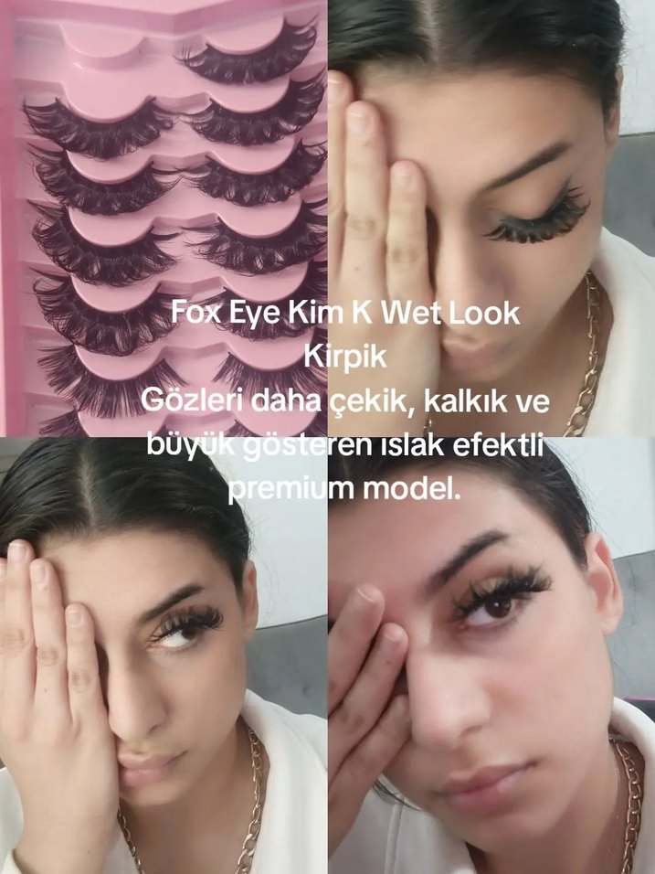 Fox Eye Kim K ıslak efektli sahte kirpikler, gözleri daha büyük, kalkık ve çekik gösterir. Premium model kirpikler doğal bir görünüm sağlar. ️yanında kirpik tarayıcısı ile birlikte gönderilecektir