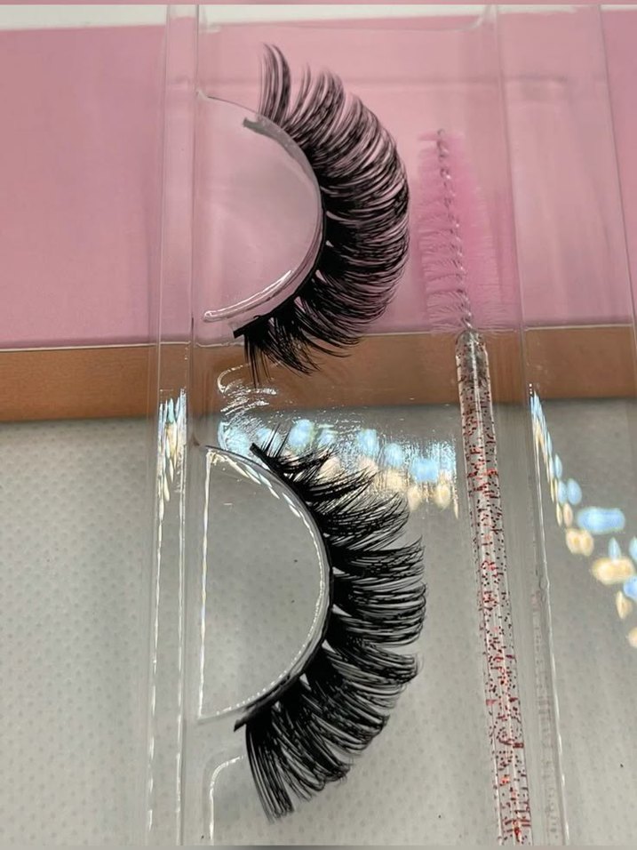 İpek kirpik görünümü, hacimli ve kıvrık tasarıma sahip takma kirpikler. Uygulama için küçük fırça dahil.