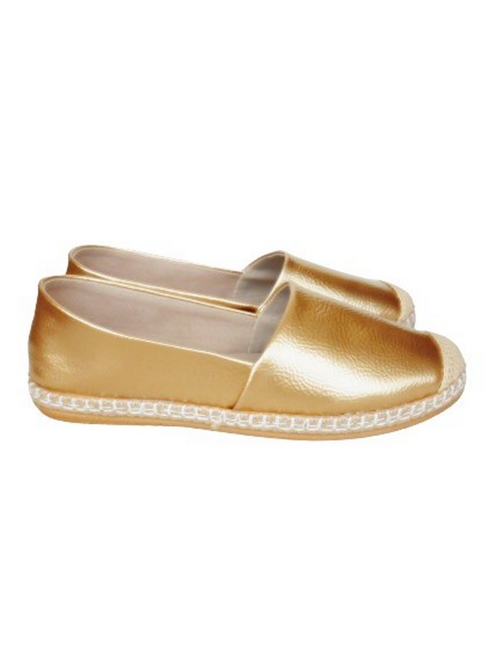 Fox Shoes Espadril. Hasarsız ve yeni durumda. Altın rengi deri espadril, parlak yüzeyli ve dolgu topuklu, günlük kullanım için zahmetsiz şıklık sunar. Minimalist ve çağdaş tarzda. #Foxshoes #Espadril