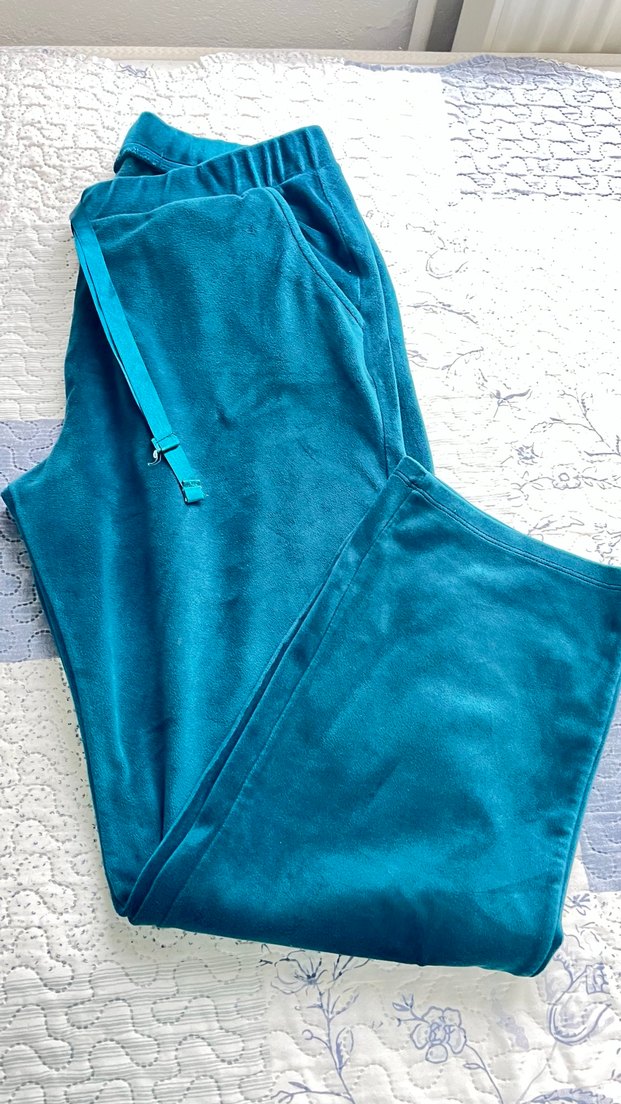 Turkuaz renkli, ve bol kesim eşofman altı . Yumuşak ve sıcak kumaştan, normal midi boyda, sade tasarımlı, günlük rahatlık için uygundur. Fransız kadife