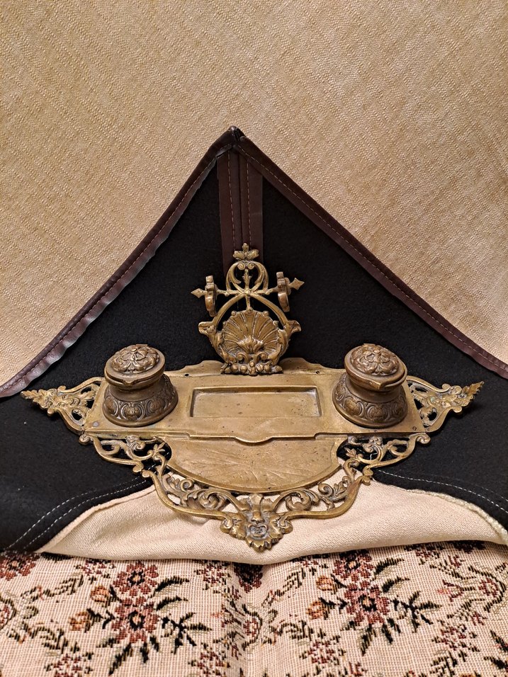 Altın renkli antika mumluk, detaylı işçilikli iki küçük tutucu ile dekoratif kullanım için uygundur. ️