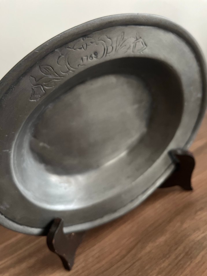 Ürün orijinal Fransız ETAIN (Kalay) damgalıdır. Arka yüzünde kaliteyi simgeleyen Melek (Angel) ve Terazi damgası mevcuttur. Ön yüzünde 1769 tarihi ve bitkisel kabartmalar işlenmiştir. Antika değil, dönem stili (vintage) üretimdir. Ölçüleri:. Ağırlık: 500 gr. Kondisyon: Yaşına bağlı kullanım izleri ve doğal patinası mevcuttur, kırık veya çatlak yoktur.