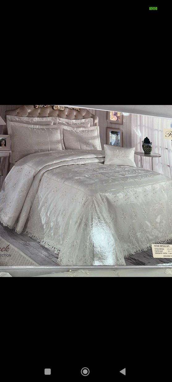 kırık beyaz hiç kullanılmamış sıfır ayarında çift kişilik yatak örtüsü.ceyizlik alındı .sadece bir kez serdim .sonrada kaldırıp kutusuna koydum.kullanilmadığı için sıfır ayarındadır.deformesi yoktur.ölçüler içerik fotoda mevcuttur.