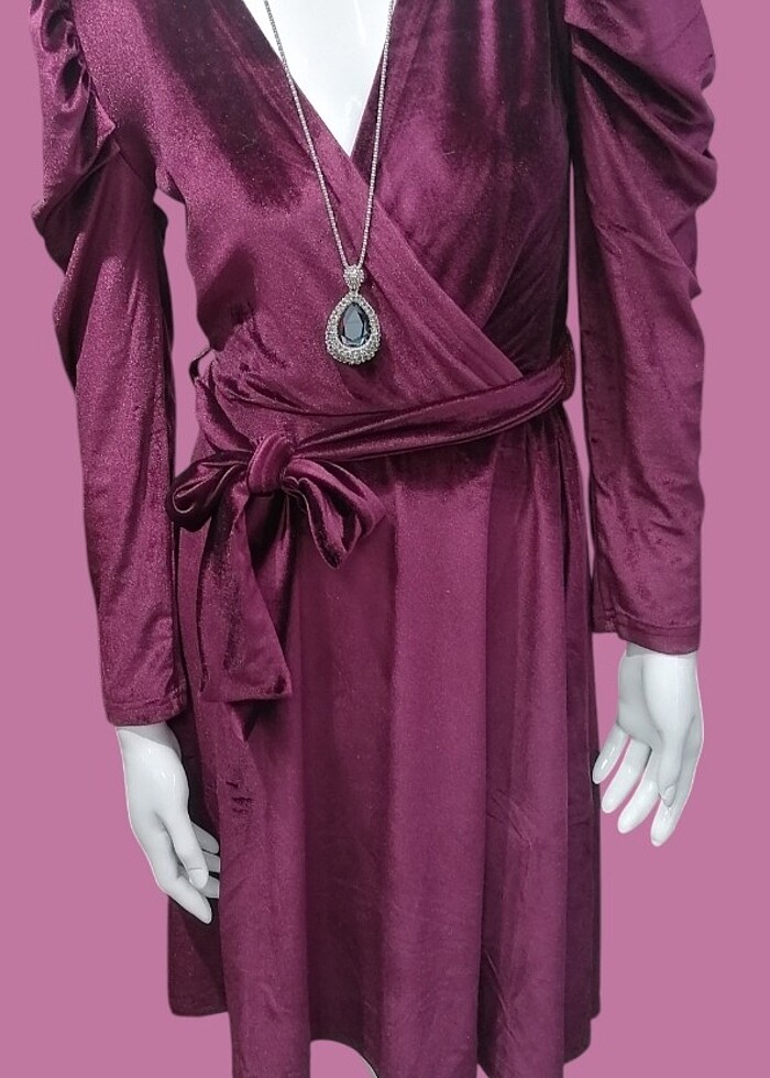 Elbisemiz Fransız kadifeden olup ful likrali bedenli bir elbisedir tam kalıptır 38 40 42 44 bedenleri mevcut olup 2 farklı rengi vardır resimdekinin aynı rengidir.