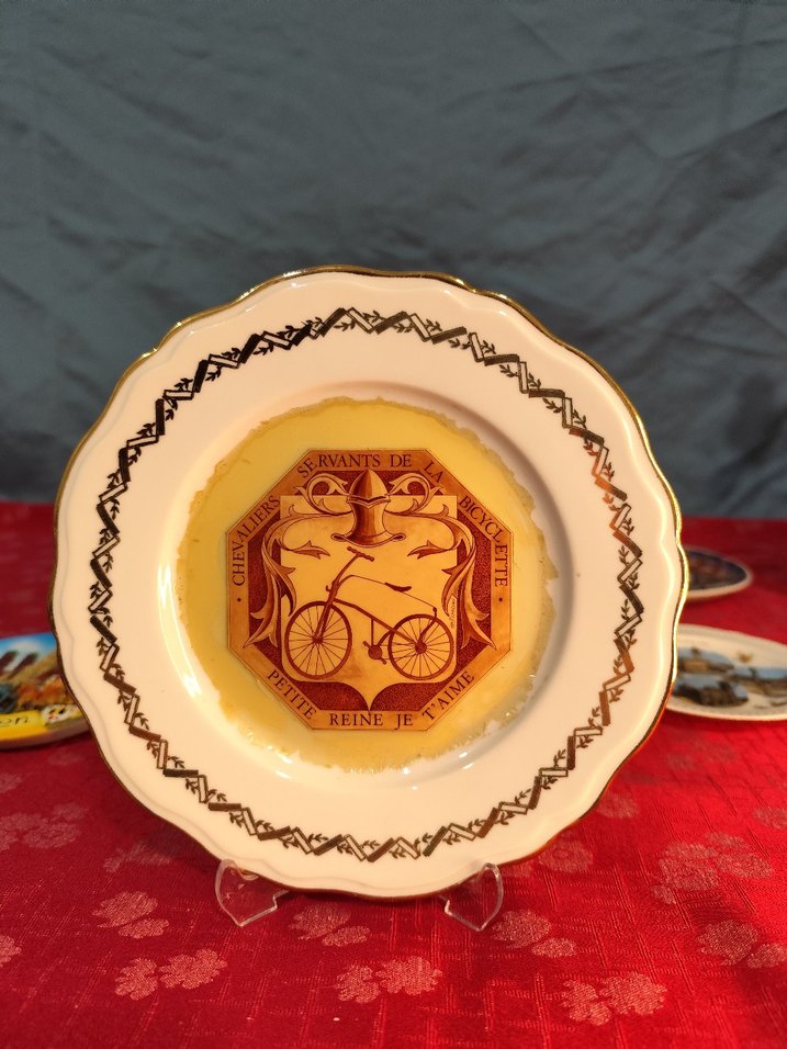 Fransız desenleri olan altın yaldızlı şık koleksiyonluk ve dekorasyonluk arkasında damgası olan tabak