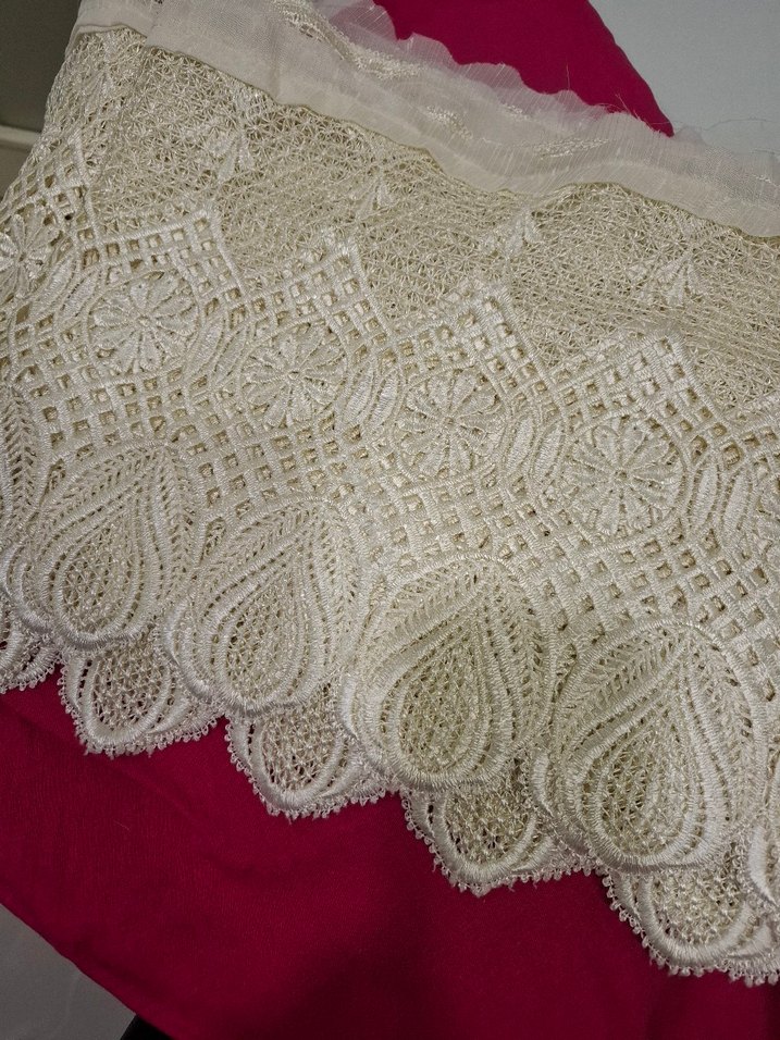 Fransız tül perde Güpürü uzunluğu 8.70m eni 30cm.dir perdede kullanılmıştır.Tül e dikilil veya motif olarak değerlendirilebilir.