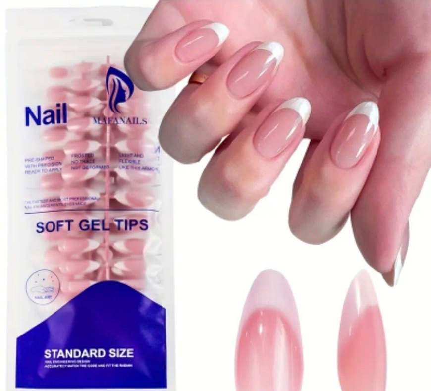 Klasik Fransız uçlu jel tırnak ipuçları. Esnek ve hafif, standart boyutta olup doğal bir görünüm sağlar. Kolay uygulama ve uzun süre dayanıklıdır.