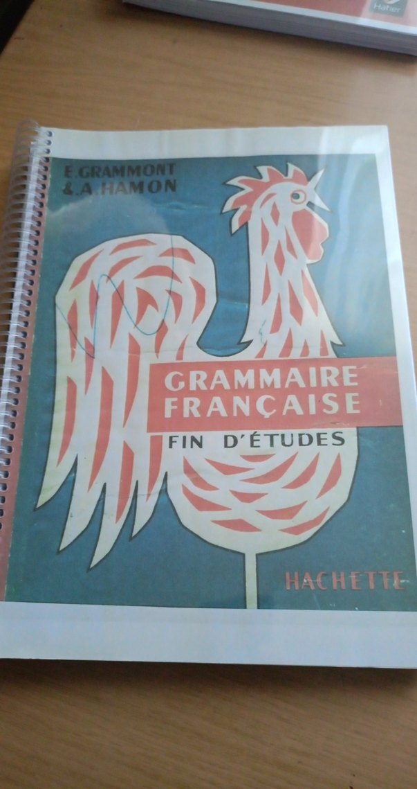 E. Grammont ve A. Hamon tarafından yazılan, Hachette yayınevine ait Fransızca dilbilgisi kitabı. Spiralli ve kapakta renkli horoz resmi bulunur.