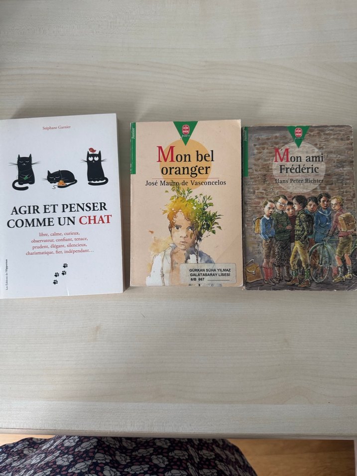 Bu sette, kedi davranışları üzerine 'Agir et Penser Comme Un Chat', José Mauro de Vasconcelos'tan 'Mon bel oranger' ve Hans Peter Richter'dan 'Mon ami Frédéric' adlı üç Fransızca kitap bulunuyor.