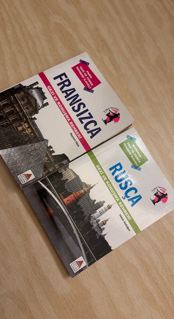 Fransızca ve Rusça dillerinde gezi ve konuşma rehberleri içeren kitap seti, kültürel bilgiler ve pratik ifadeler sunar. TEKLİ FİYATIDIR !