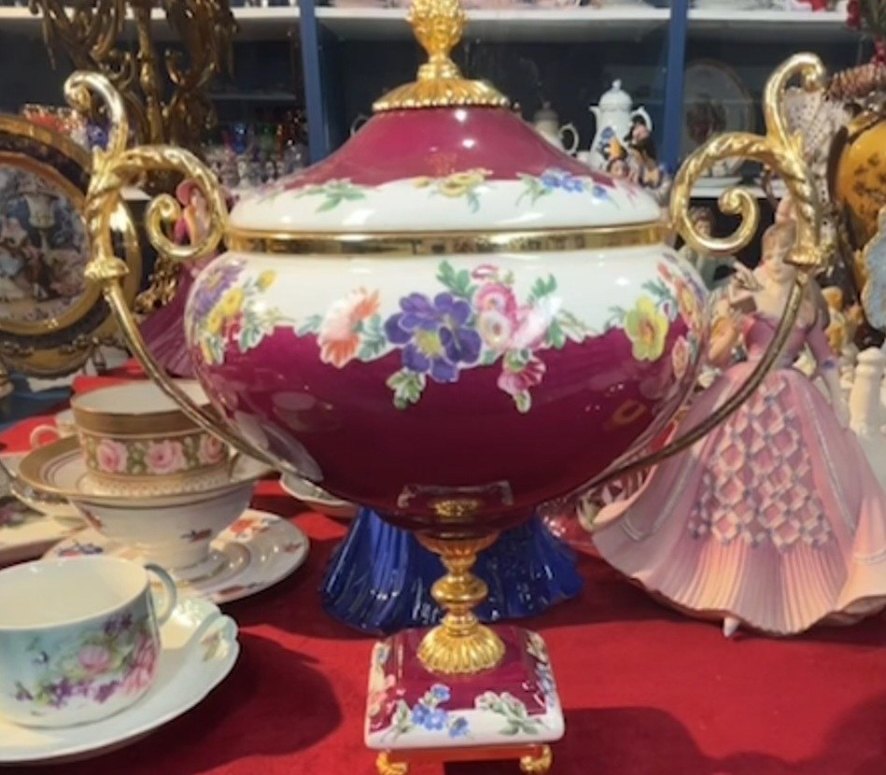 Bordo renkte, renkli çiçek desenleri ve altın detaylarla süslenmiş dekoratif porselen , şıklık katıyor. hatasız kusursuz vitrin ürünüdür.