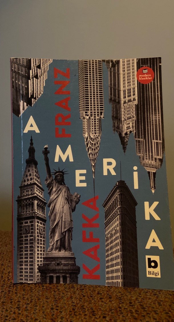 Franz Kafka'nın Amerika romanının kapağında New York'un simge yapıları yer alıyor. Modern klasikler serisinden bir kitap.