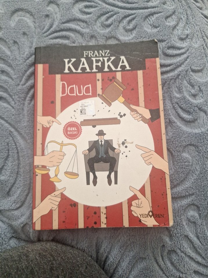 Franz Kafka'nın "Dava" adlı romanı, adalet ve yargı temalarını simgeleyen çizimlerle dikkat çekiyor.