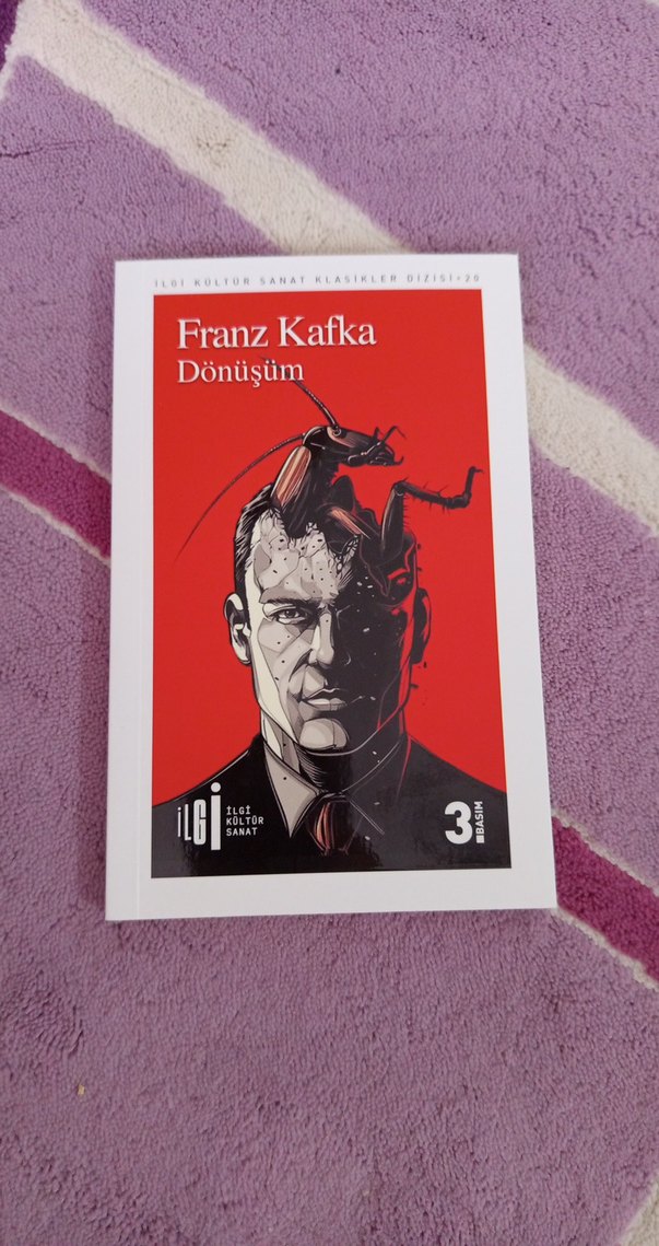 Franz Kafka'nın "Dönüşüm" romanı kimlik ve yabancılaşma temalarını işliyor, dikkat çekici kapak resmiyle.