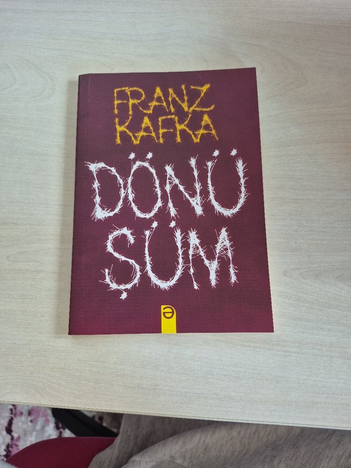 Franz Kafka'nın "Dönüşüm" adlı romanı, dokulu tipografiyle dikkat çeken kapak tasarımına sahip bir basılı kitaptır.