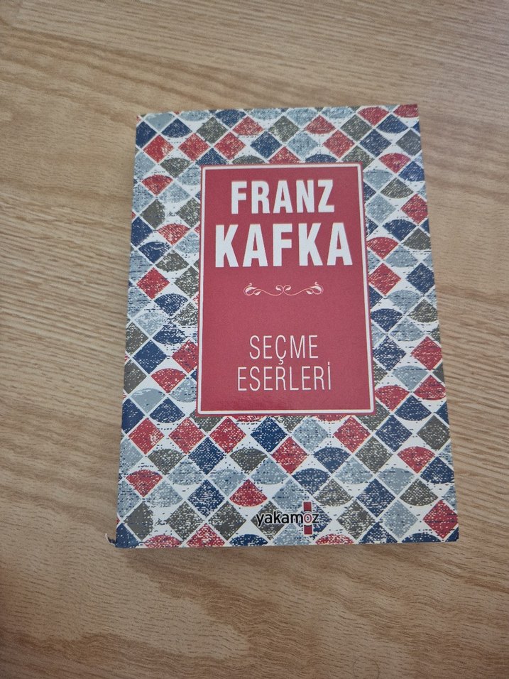 Franz Kafka'nın seçme eserlerini içeren, renkli karo desenli kapaklı bir kitap.