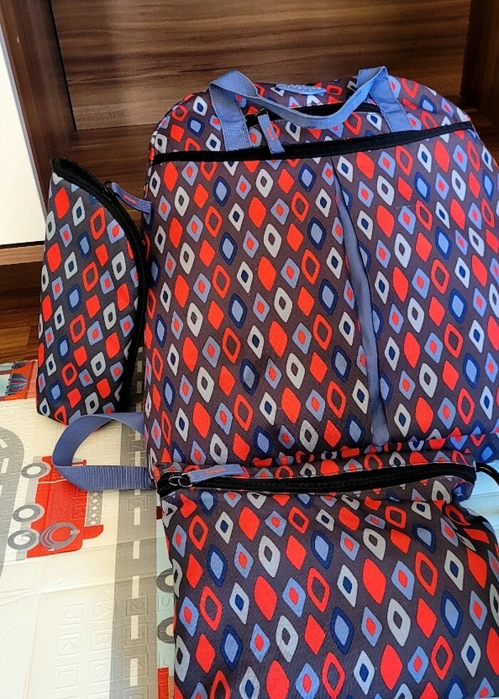 Yurt dışı ürünü Freckles okielog Anne bebek bakım çantası İç cebinde anahtar asma yeri var bebek arabasına asma kolları var biberonla ve malzemeler için iç bolmeleri var Markayı zatn biliyorsunuz kumaşı içi boş olduğunda hafif bi kumaş çok hafif cocuk doğduktan sonra bunun çok önemli olduğunu fark ettim oğlum hiç biberon kullanmadı mama da termal biberonla soğutmaz sifir ayarında duruyor alt değiştirme de kullanılmadı çantası da doğuya tayin çıktığı için takip takıştırıp gideceğim bi yer olmadı temiz ürünler ayrıntılı foto atabilirim Tam takım sıfırı 2300