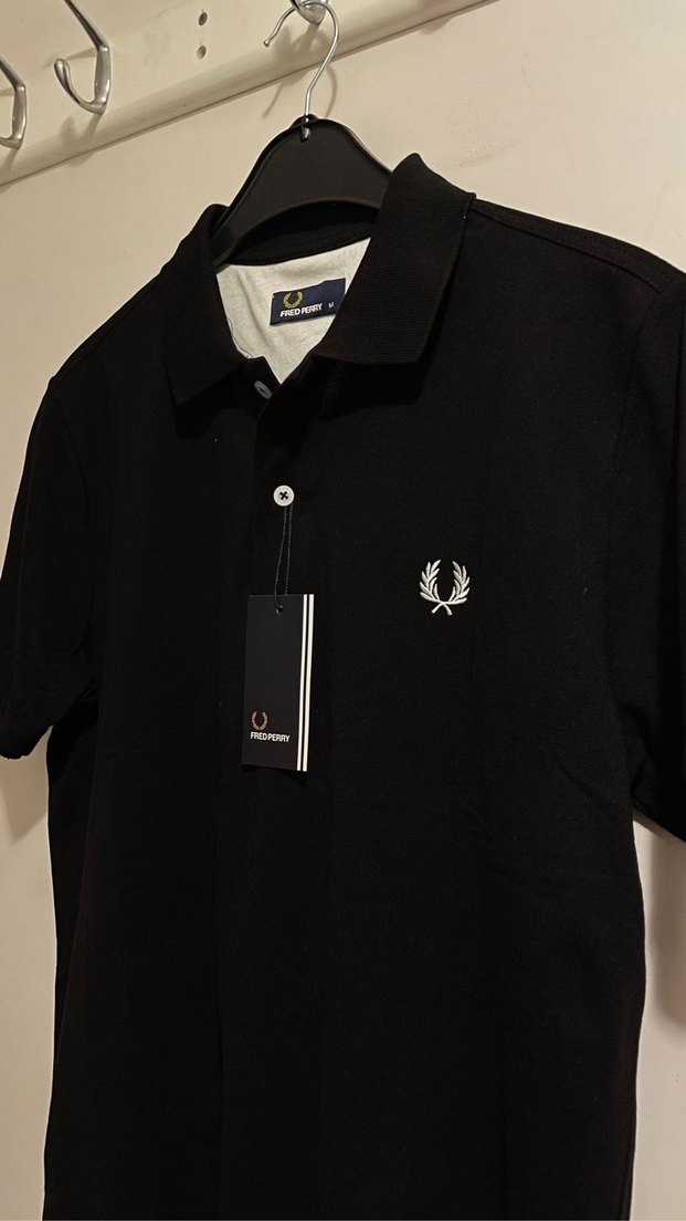 Pamuk siyah polo tişört, düğmeli ve yakalı. Kısa kollu, baskılı logo ve normal kesim ile ofis ve günlük kullanım için uygun.