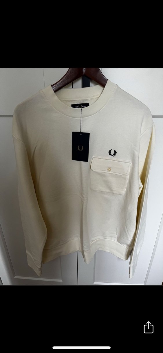 Erkekler için yuvarlak yakalı, uzun kollu, yumuşak ve sıcak kumaştan yapılmış beyaz sweatshirt. Rahat kesimi ve küçük göğüs cebinde detay bulunan günlük sokak stili.