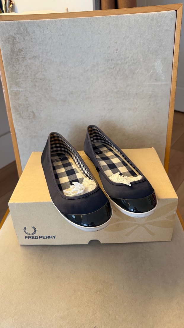 Fred Perry kadın babetler, blok topuk ve pileli tasarıma sahiptir. Baskılı desen ve kareli iç detaylarıyla günlük kullanıma uygundur.