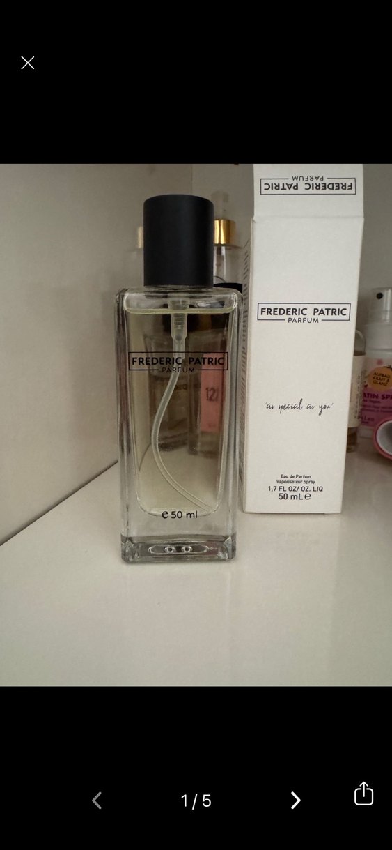 Frederic Patric kadın parfümü, siyah kapaklı 50 ml cam şişede. kokusuna bakmak için sıktım sadece bir iki fıs çiçekli koku
