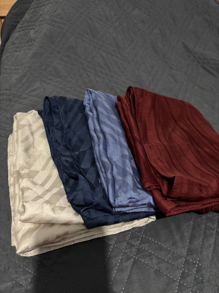 4 tane jakarlı şal lacivert ve krem 1 kez kullanıldı diğerleri kullanılmadı 2 adet bambu şal siyah 2-3 kez kullanıldı 1 adet bürümcük şal hiç kullanılmadı 1 adet siyah pamuk şal 1 kere kullanıldı fiyat adet fiyatıdır satın almadan önce lütfen iletişime geçiniz