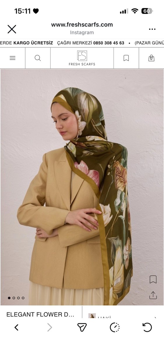Kadınlar için koyu haki renkli, drapeli ve ipeksi dokulu şal. Çağdaş, mütevazı ve bohem tarzda, FRESH SCARFS markalı. Bir kenarında defo var fiyatı uygun tuttum o yüzden