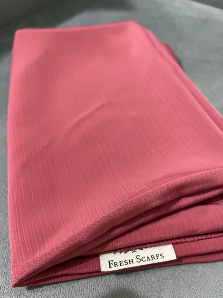 Parlak pembe renkte, pilili dokulu, yumuşak sentetik kumaştan yapılmış kadın şalı.Krınkıl medine ipeğidir.