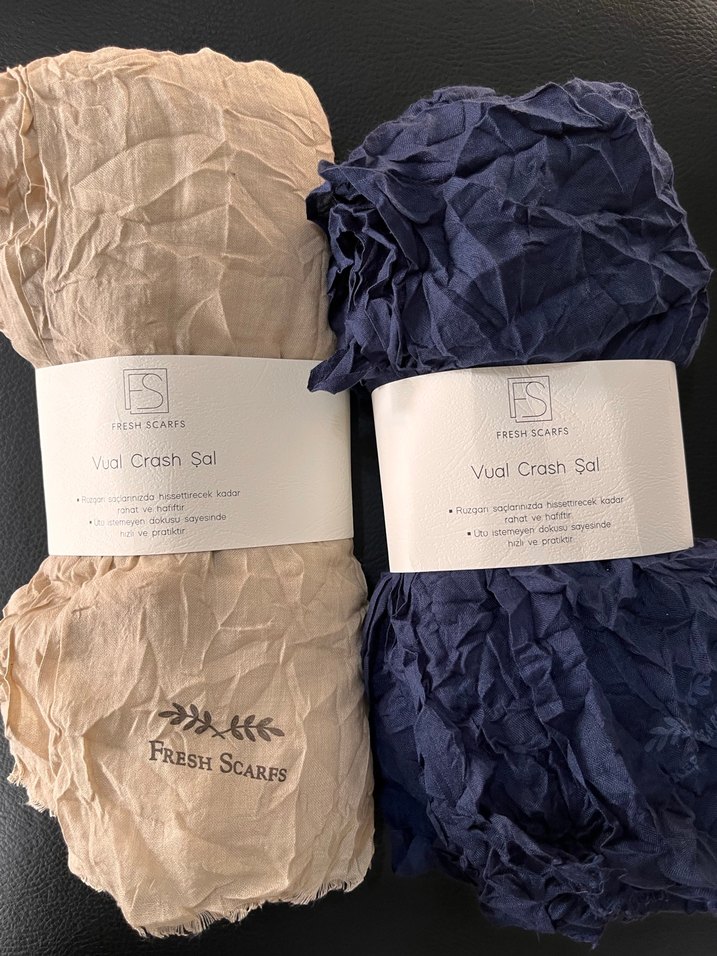 Ütü istemeyen vual crash bej ve lacivert renklerde kadın şal. Fresh Scarfs markasına ait, şıklık ve rahatlık isteyenler için ideal . Adet fiyatıdır. #freshscarfs #şal #tesettür