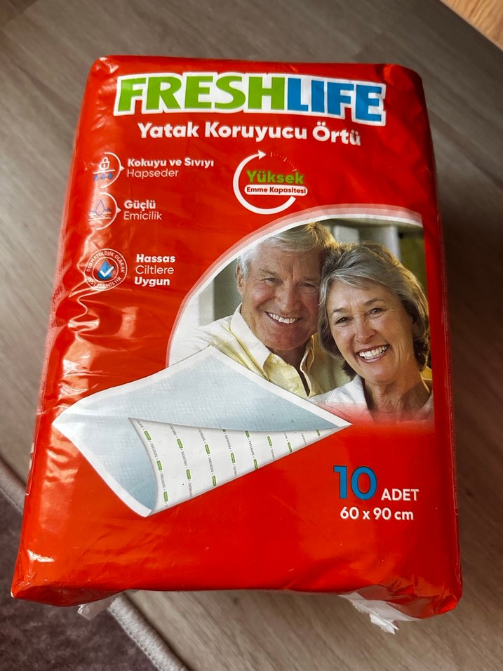FRESHLIFE yatak koruyucu örtü 60x90 cm ölçüsünde, 10 adet olarak satılır. Kokuyu ve sıvıyı önler, güçlü emiciliğe sahiptir ve hassas ciltlere uygundur.bu şekilde 3 paket bulunmakta 3 paket fiyatı 150 tl