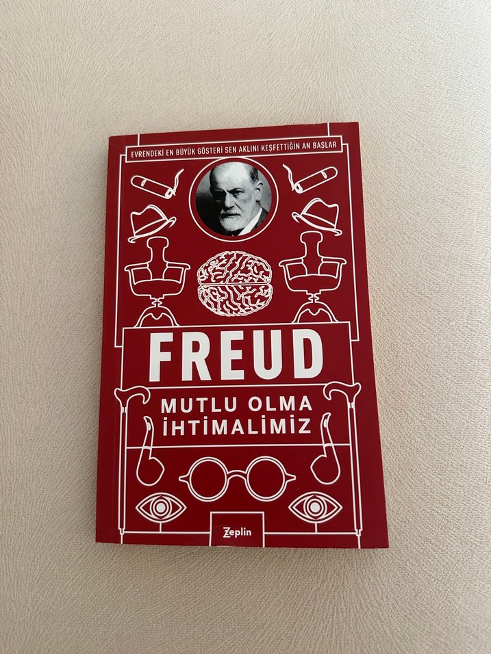 Freud'un mutluluk ihtimallerini ele aldığı psikoloji kitabı. Kapağında Freud'un portresi ve sembolik çizimler bulunur.