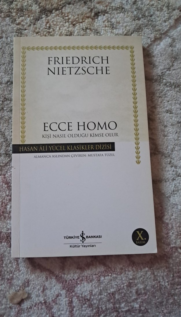 Friedrich Nietzsche'nin Ecce Homo kitabı, Almanca aslından Mustafa Tüzel tarafından çevrilmiş, Hasan Ali Yücel Klasikler Dizisi'nden Türkiye İş Bankası Kültür Yayınları'nca yayımlanmıştır.