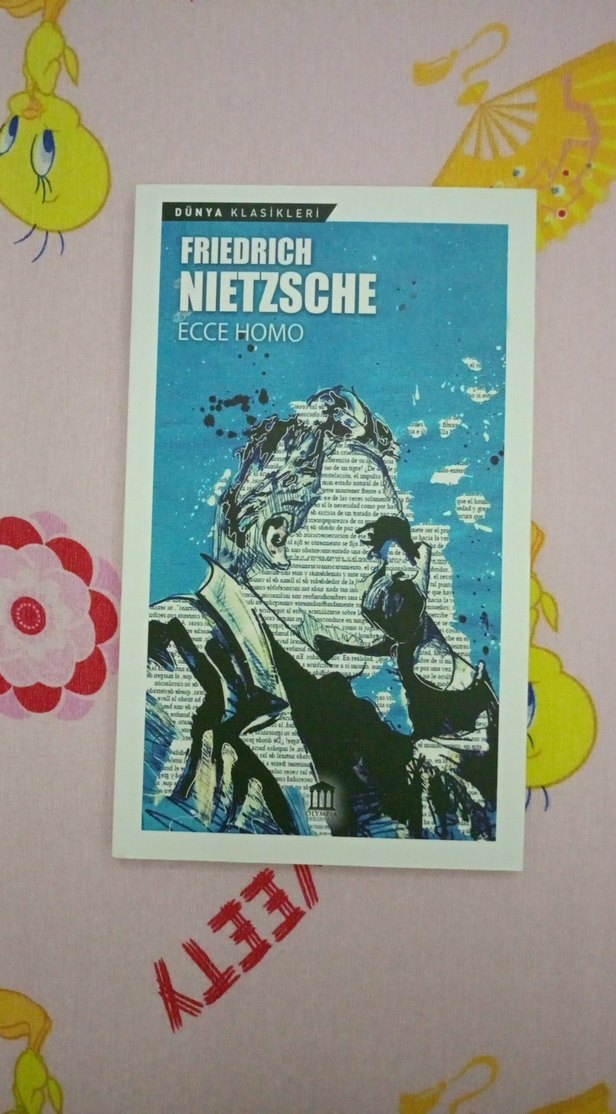 Friedrich Nietzsche'nin klasik eseri Ecce Homo, dikkat çekici kapak çizimiyle birlikte.