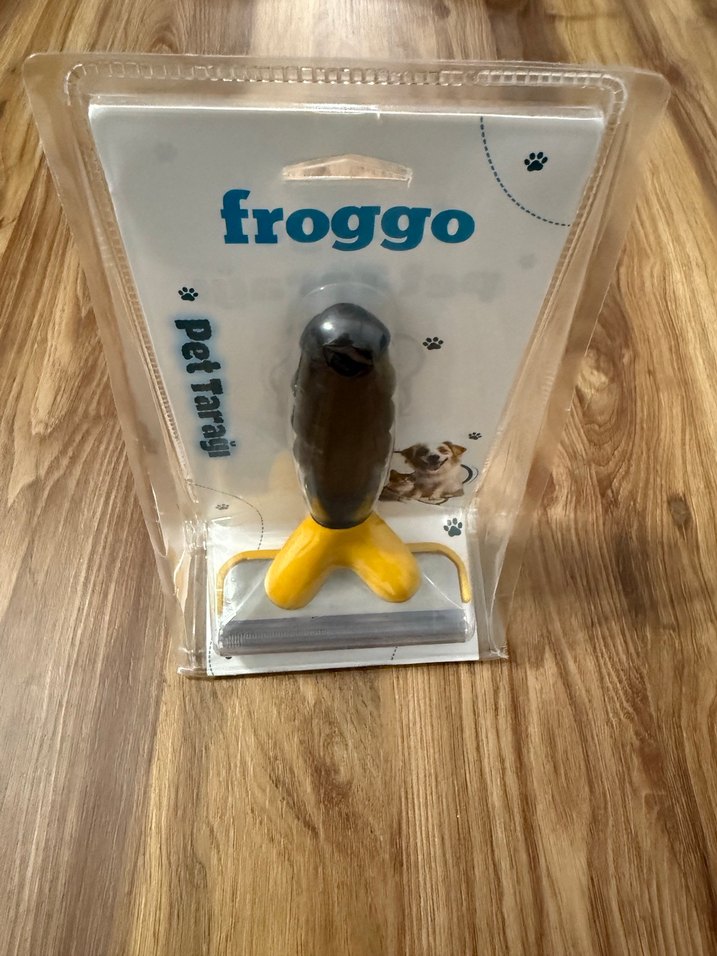 Froggo marka, gri ve sarı renkte kedi köpek tüyü toplama aksesuarı. PetTaraj tarafından sunulan bu ürün, kedinizin köpeklerinizin tüylerini temizlemenize yardımcı olur.
