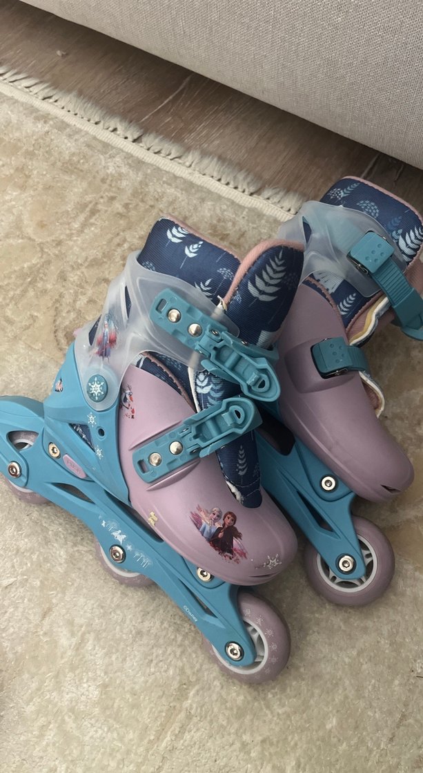 yumuşak kürklü, pastel mavi ve mor renkli paten. Sokak giyimi ve spor için uygundur. ⛸️