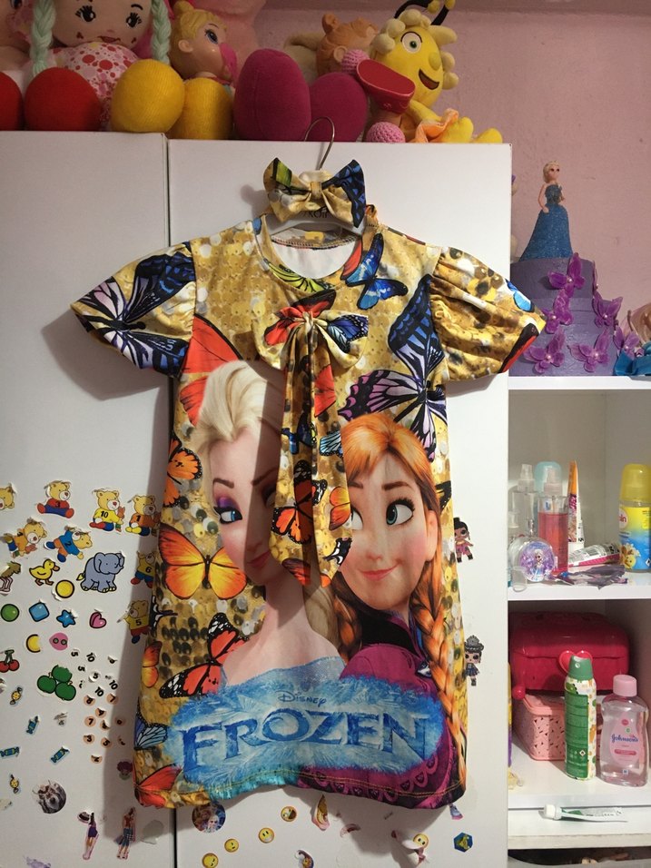 Frozen elsalı elbise 1 kere giyildi temiz sorunu yoktur göründüğü gibidir aksesuarı saç bandı vardır 3-4 yaşa uyumlu olur