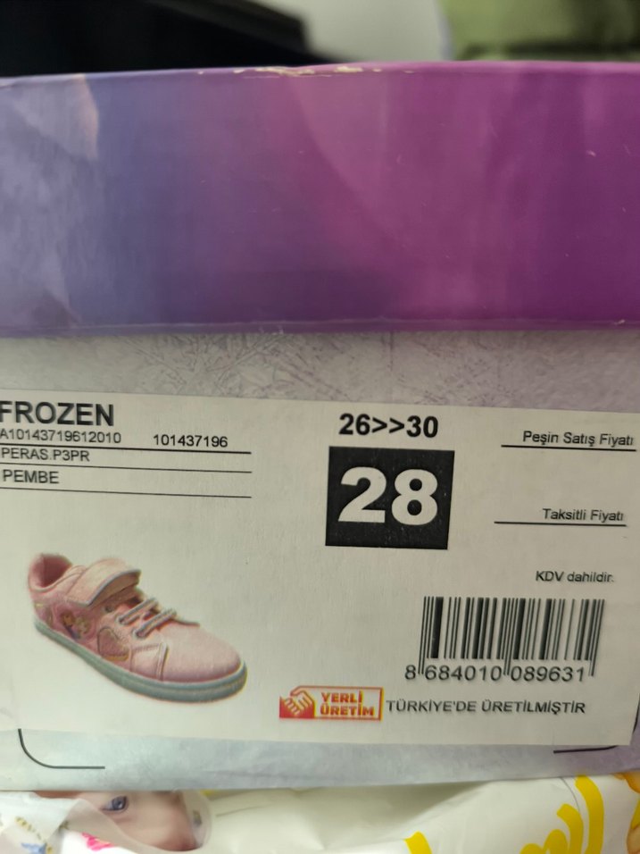 Frozen Pembe baskılı kız çocuk spor ayakkabısı, plastik malzemeden, trend sokak stili için uygun. 28 numara