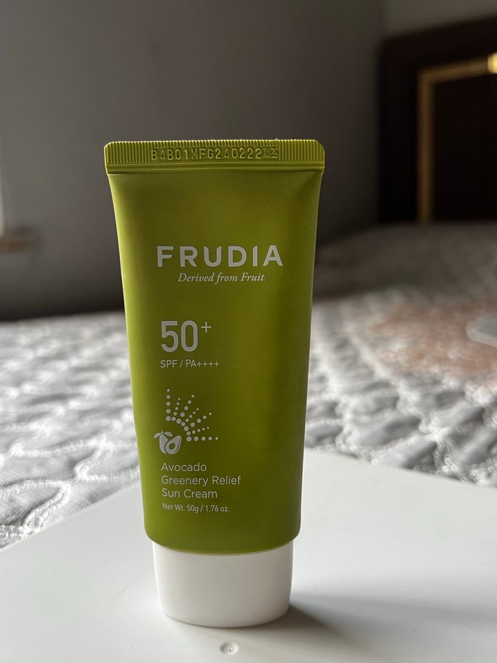 Frudia Avokado Greenery Relief Güneş Kremi, SPF 50+ ve PA++++ koruma sağlar. Meyveden elde edilen formülüyle cildi korur ve rahatlatır. 50g tüp. Çok az kullanıldı